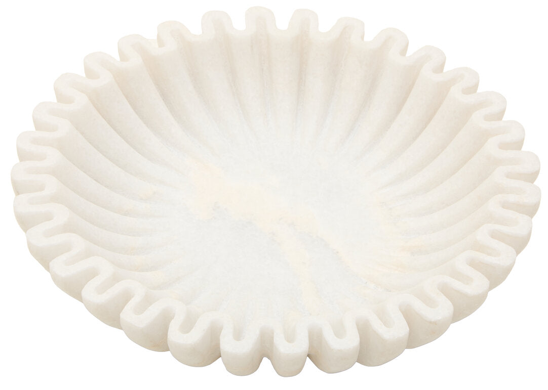 The Oria small bowl boasts handcrafted charm with its intricate yet durable white marble body with organic veining and chic fluted design.