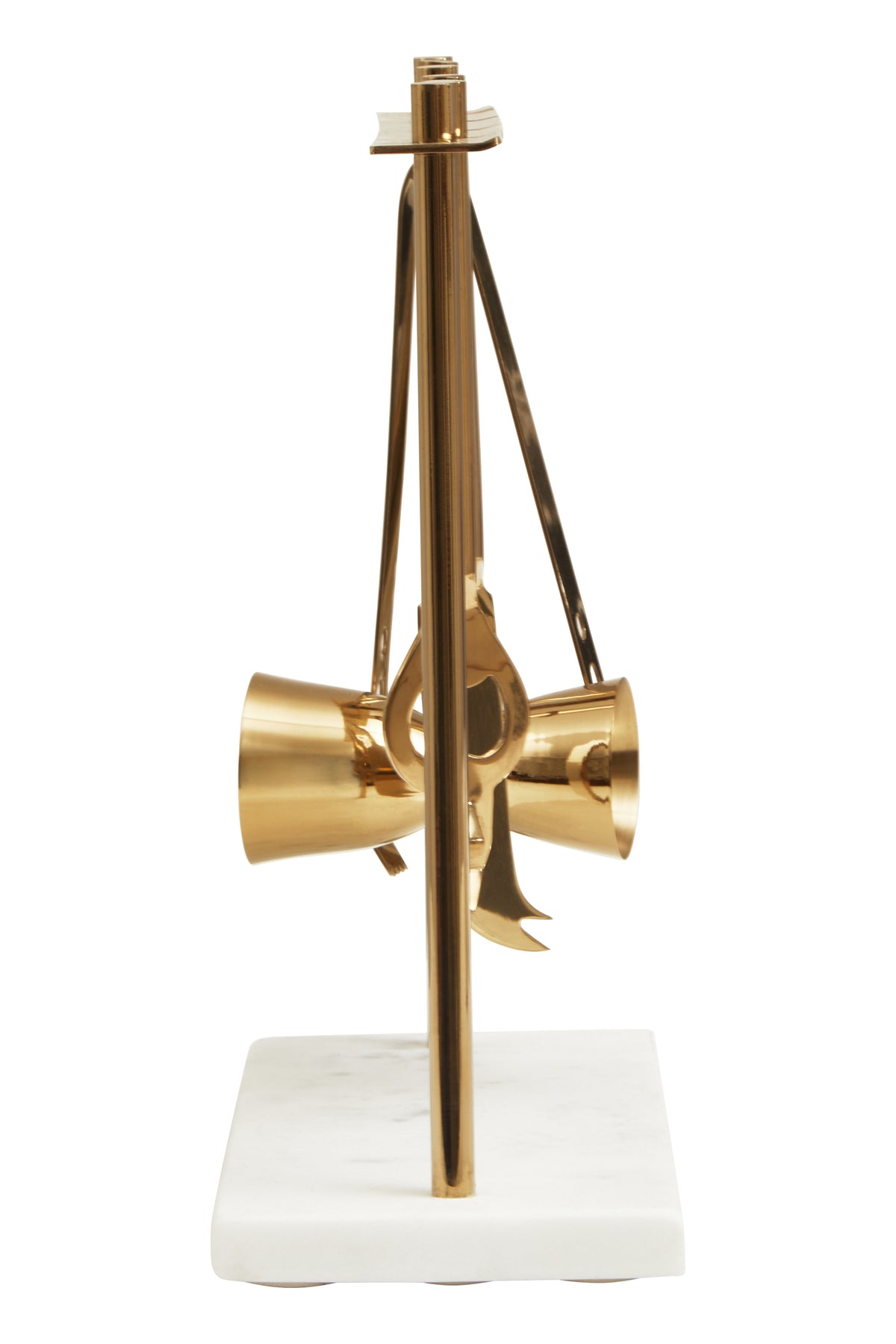 This elegant stainless steel bar tool kit with a white marble base, is a must-have for any cocktail enthusiast. The sleek design and practical tools, including a bottle opener, knife, ice tongs, and a double jigger, make it a perfect addition to your home bar.