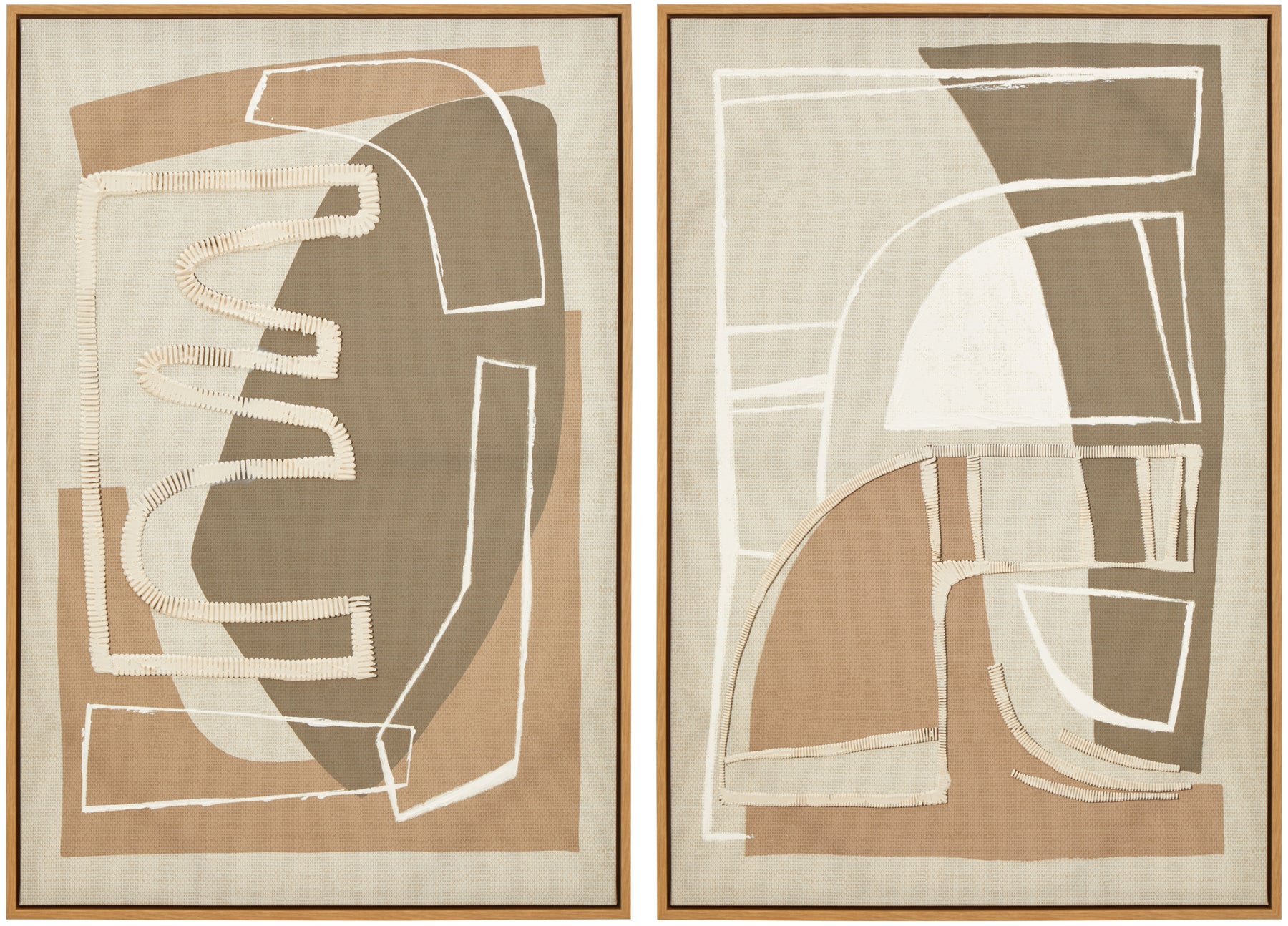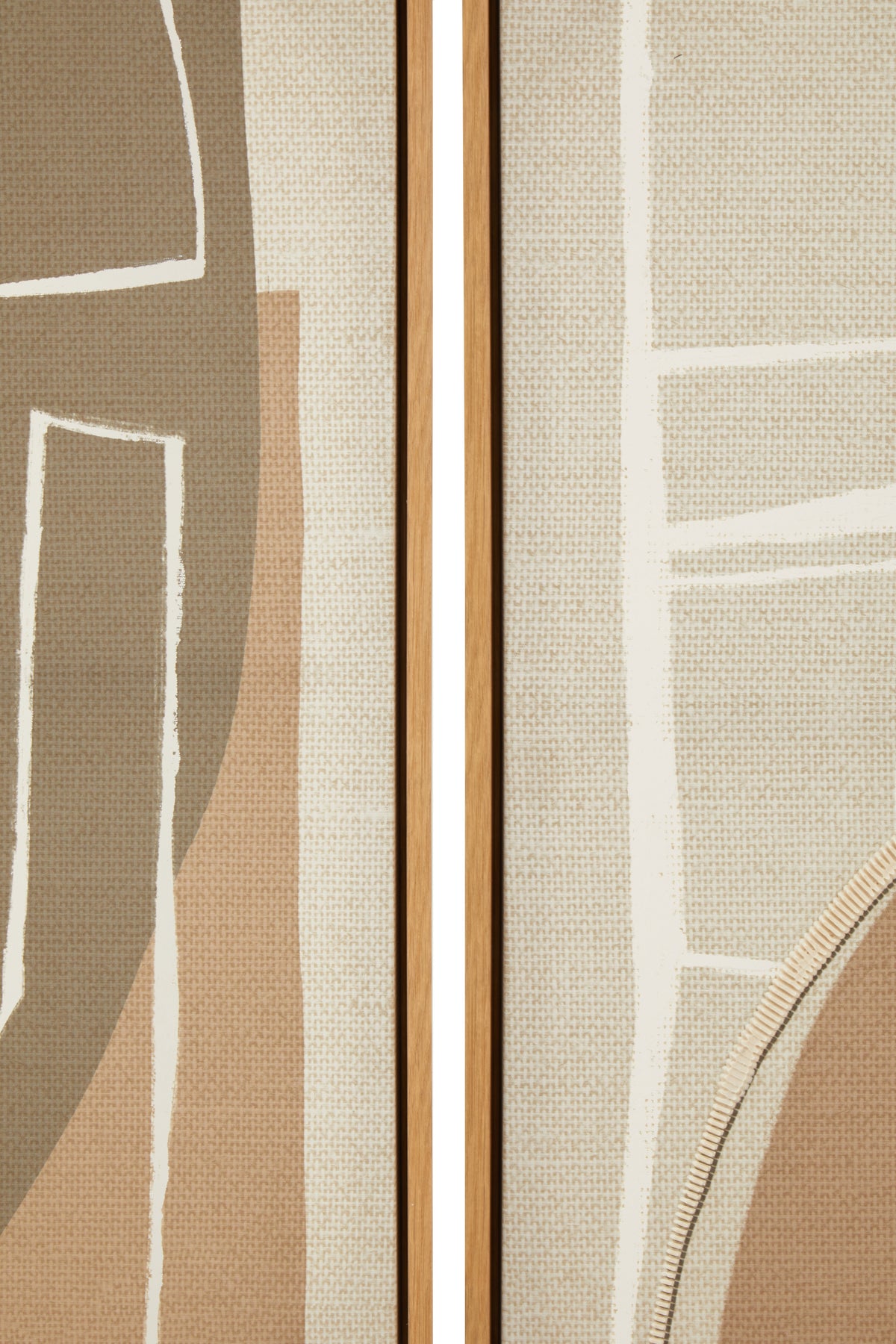 Experience the harmonious blend of neutral shades and intriguing shapes in the Nuoro set of two wall arts. This elegant pair creates a sophisticated atmosphere in any living space, while the light walnut frame adds a touch of natural warmth.