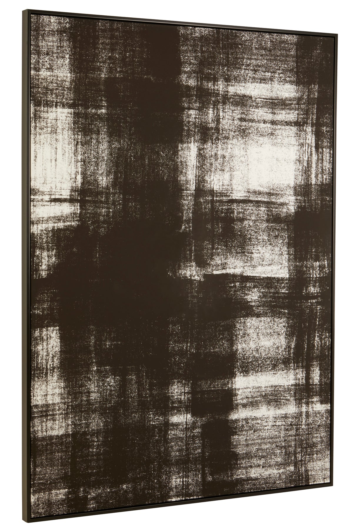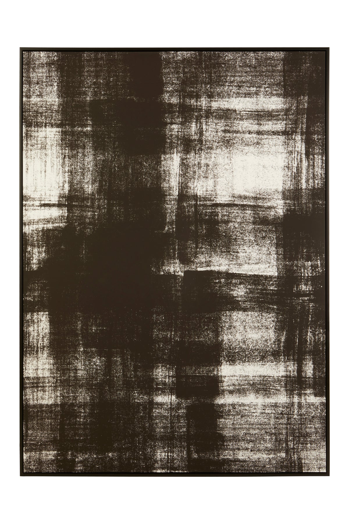 This large, contemporary piece makes a bold statement with its striking black and white design. Finished with a sleek, black wooden frame, this monochromatic piece perfectly complements modern interiors.