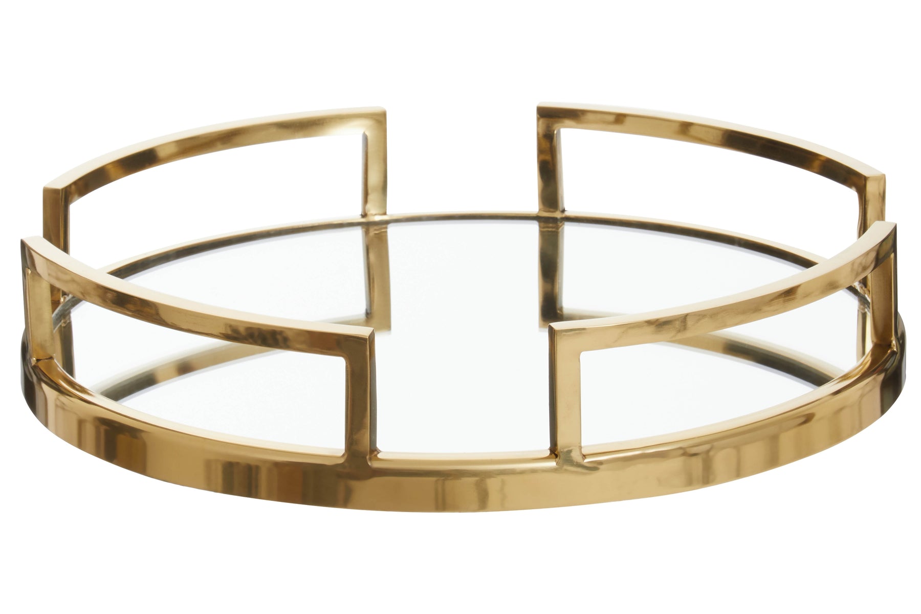 Elevate your home decor with the Varallo tray. This sculptural piece boasts a striking stainless steel frame with a luxurious gold finish. The mirrored center adds a touch of sophistication, making it a perfect addition to any space.