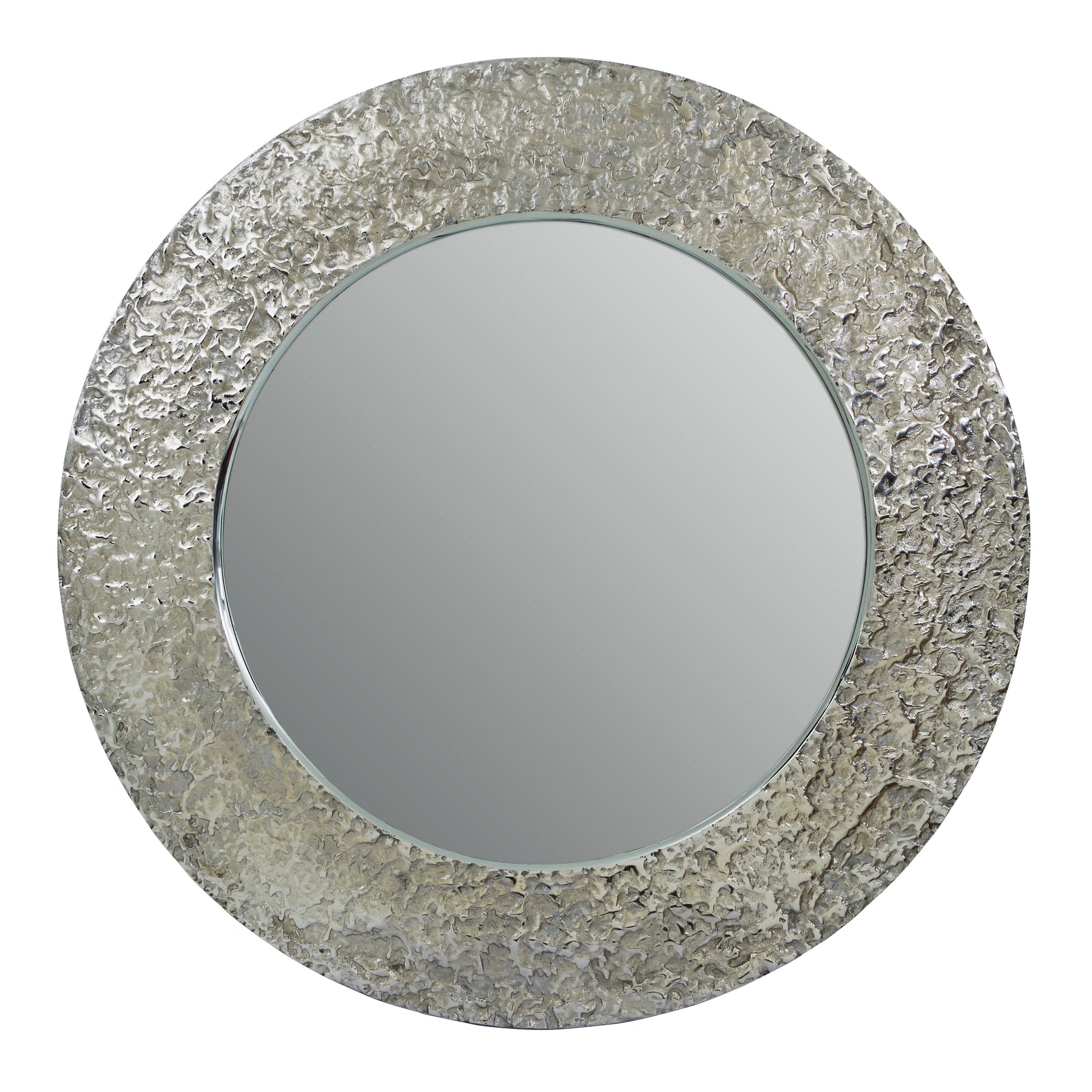 Versatile and stylish, this round hammered nickel-finish mirror can be used to create a variety of looks. Its textured finish adds depth and dimension, while its round shape complements both modern and traditional décor.