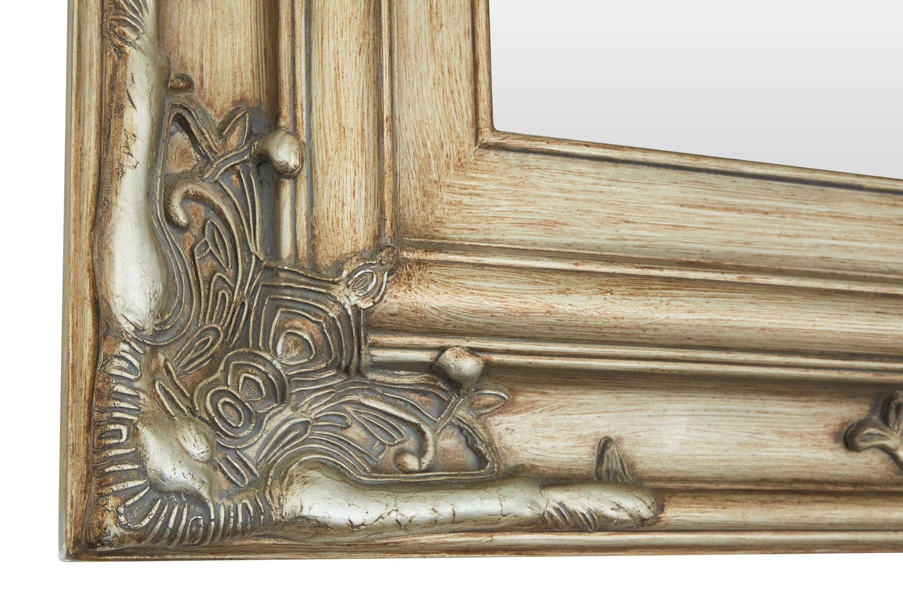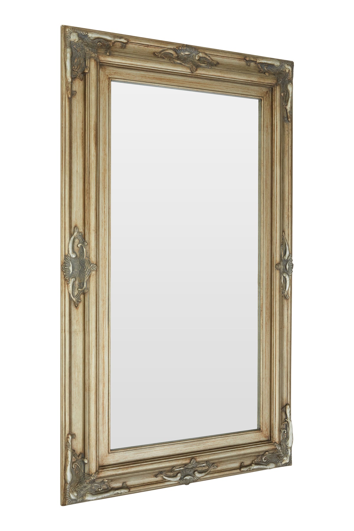 This exquisite wall mirror features a stunning gold finish and intricate decorative motifs, perfect for adding a touch of luxury to your boutique-inspired décor. Its natural wood frame, with beautifully distressed corners, creates an authentic antique look.