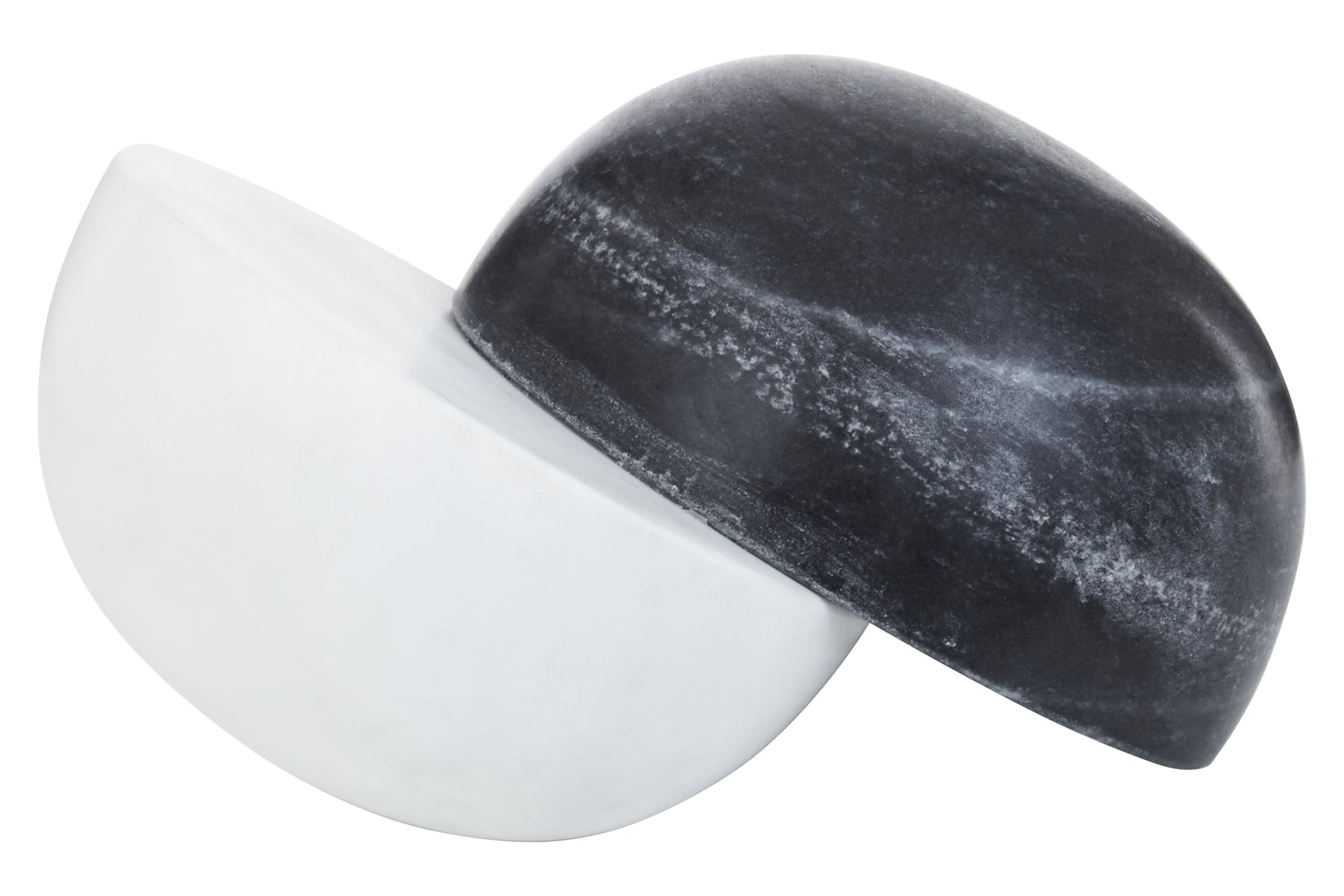 This captivating marble sculpture features two contrasting hemispheres: one pristine white, the other deep black. The interplay of light and shadow creates a mesmerizing effect, adding a touch of elegance to any space. Crafted from durable marble, this piece is a timeless addition to your home deco.